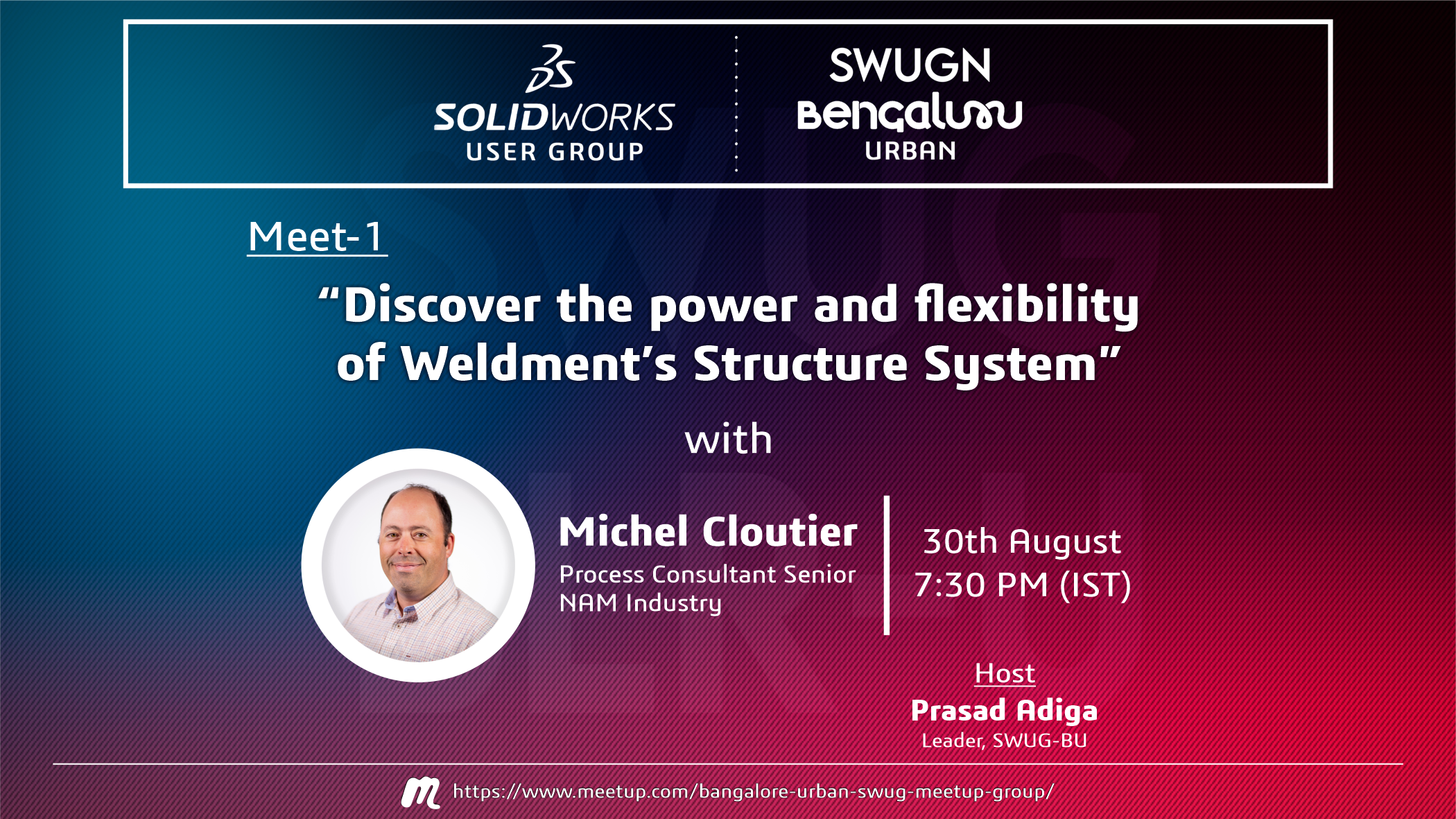 I am very delighted to inform you that our first user group meeting will be held on 30th August with Michel Clouter who will be presenting "Power and flexibility of Weldment’s Structure System"