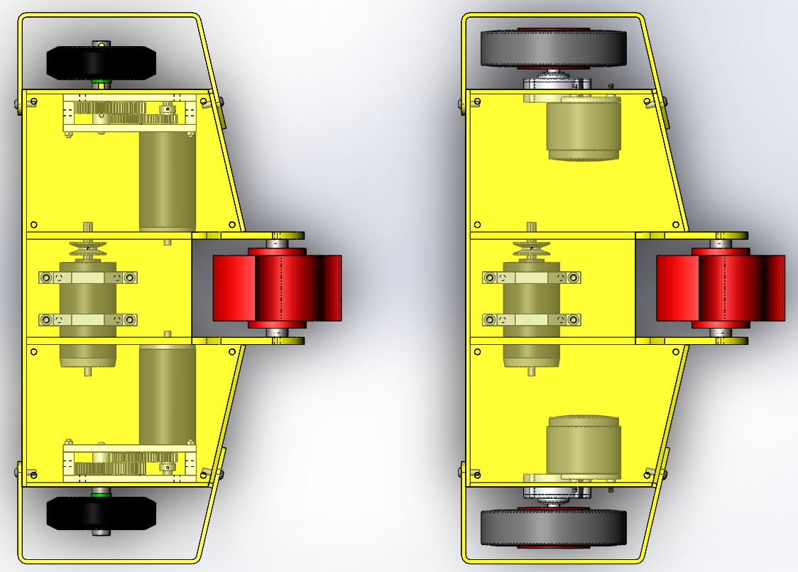 My middleweight concept. Idea is either my existing ebike motor set w/ 8"trolley wheels or my custom ampflow reducer set w/ 6" colson may fit. It's symmetrical so it's invertible and functional either top or belly up. Some conerns though;