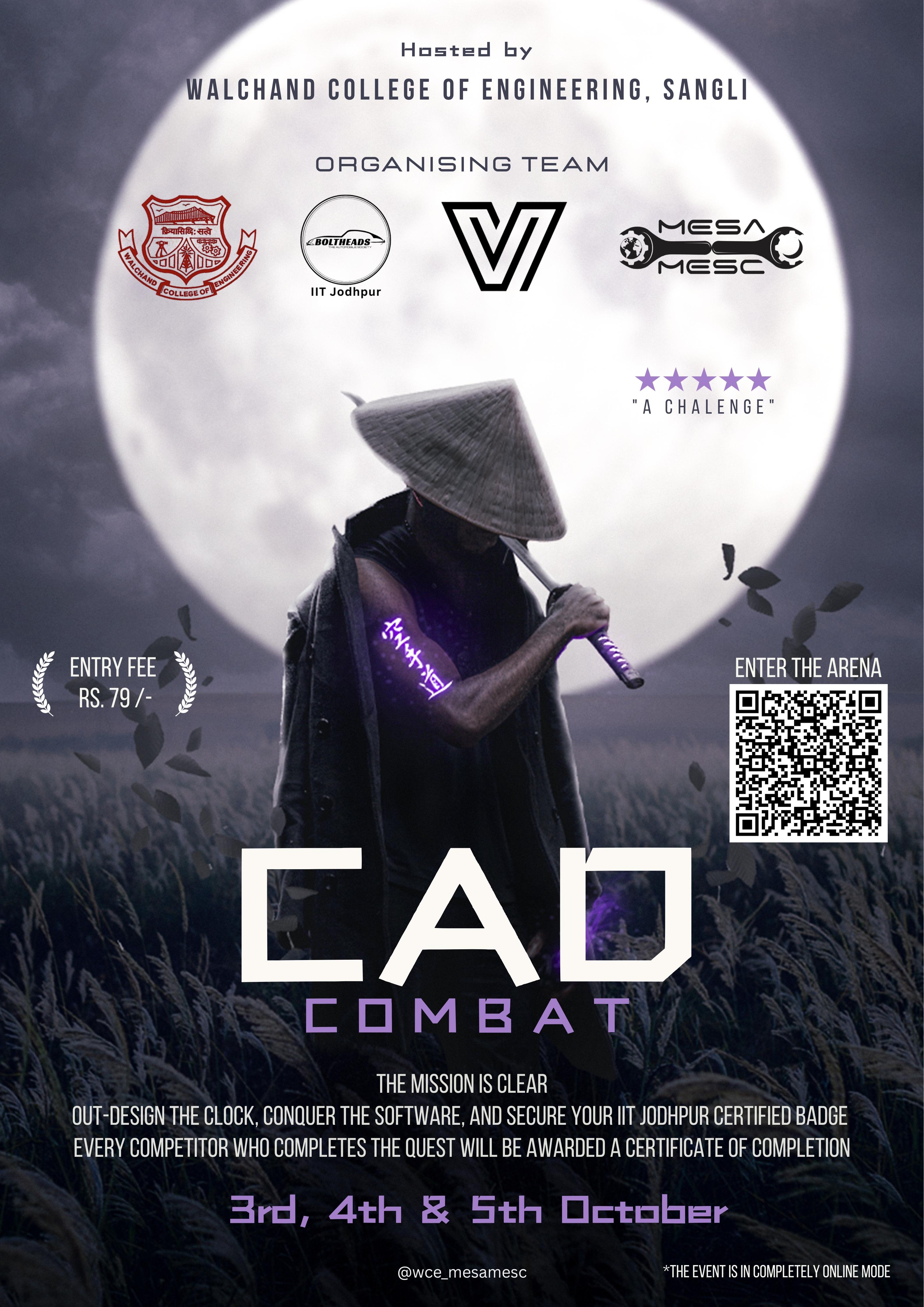 💻🔥 Challenge your CAD skills like never before!Get IIT JODHPUR certifiedVertex Presents CAD COMBAT 2025 In collaboration with IIT JODHPUR ⚔️ An intense online design competition where imagination meets precision!📅 October 3rd, 4th & 5th, 2025📍 Walchand College of Engineering, Sangli🎯 Levels of Battle: • CAD Novice • CAD Ranger • CAD MasterUnleash your creativity • Solve challenging tasks • Win exciting prizes 🎁👉🏻Click here to register for CAD COMBAT 2025: [ Refferal : PJ76]🔗https://forms.gle/WnEsdgufig48U5dd8👉🏻Join the WhatsApp group for latest updates & guidelines!🔗 https://chat.whatsapp.com/LSxT0zZh1an7CkBKUnrAMM?mode=ems_qr_cFollow Follow updates on Instagram : @wce_mesamesc