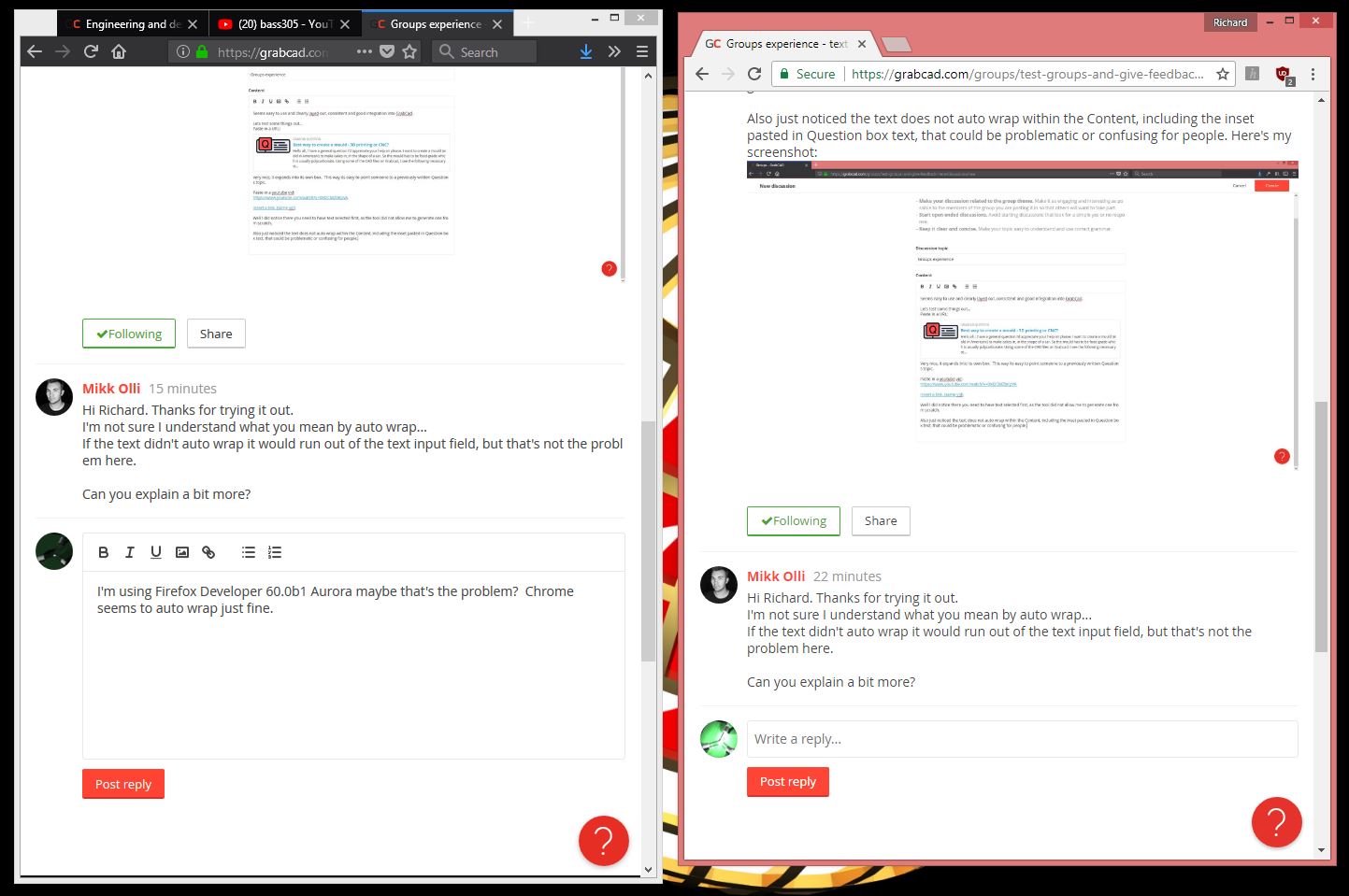 Also just noticed the text does not auto wrap within the Content, including the inset pasted in Question box text, that could be problematic or confusing for people. Here's my screenshot: