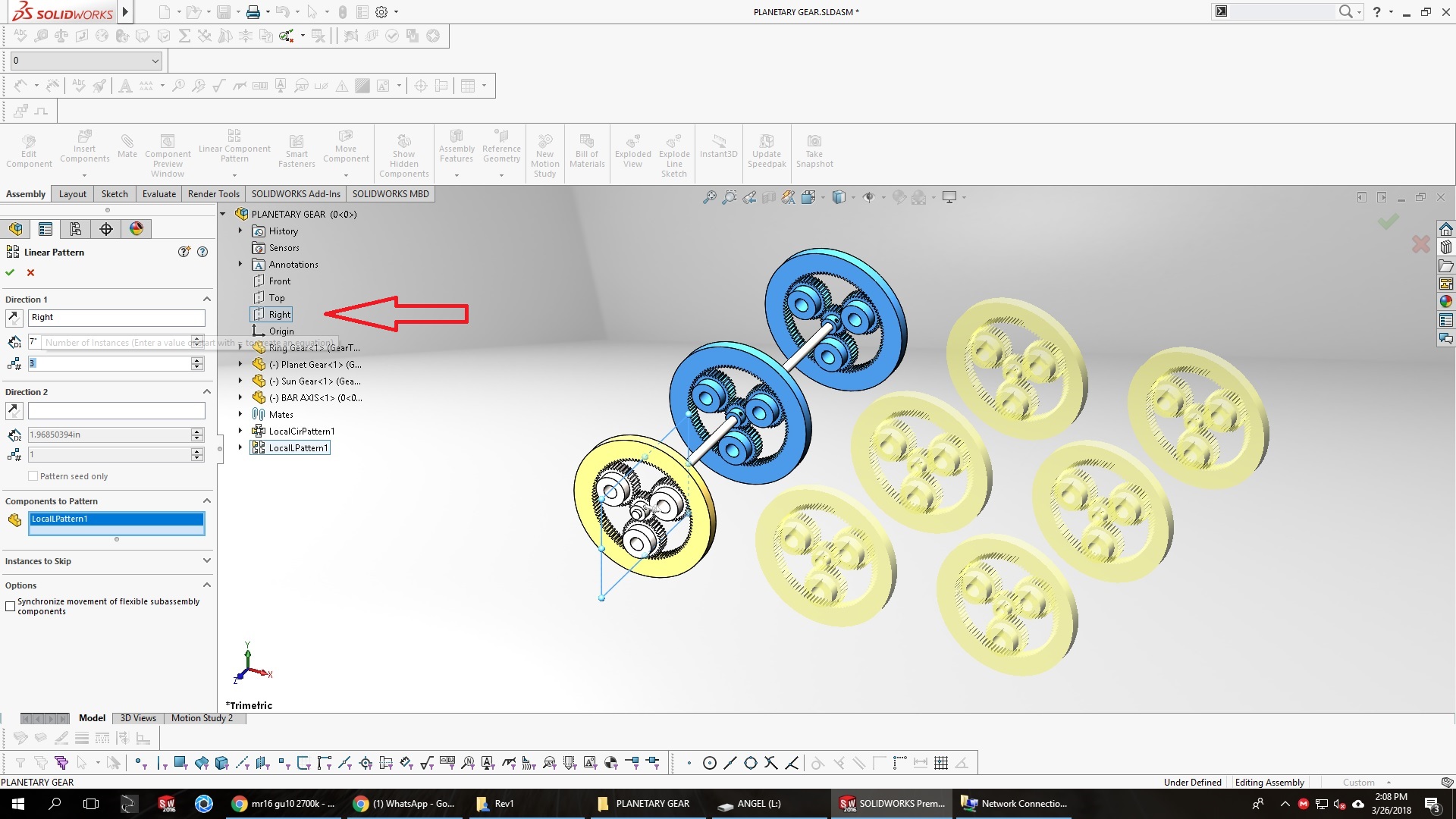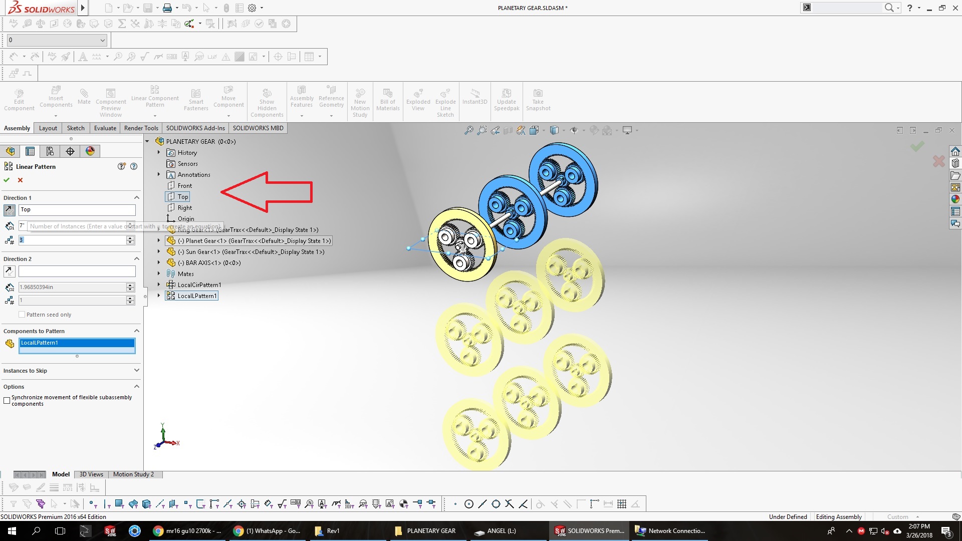 There are times when our model or design changes constantly, due to changes, revisions, etc. and we lose some reference edge of our model, which guides our pattern, use planes, not only the standard ones, but any other plane generated in our design, it serves as a guide, the advantage we get is that even if the model changes in a way, our linear pattern will never collapse or we will have to change the edge guide constantly. I know, Is easy select another edge for your linear pattern