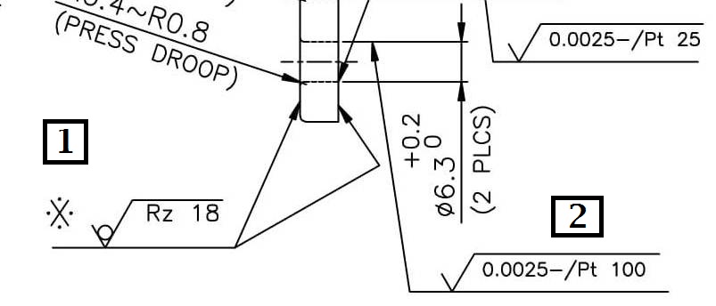 2 = seems incomplete but could be for roughness of the surface after machining but i could be wrong