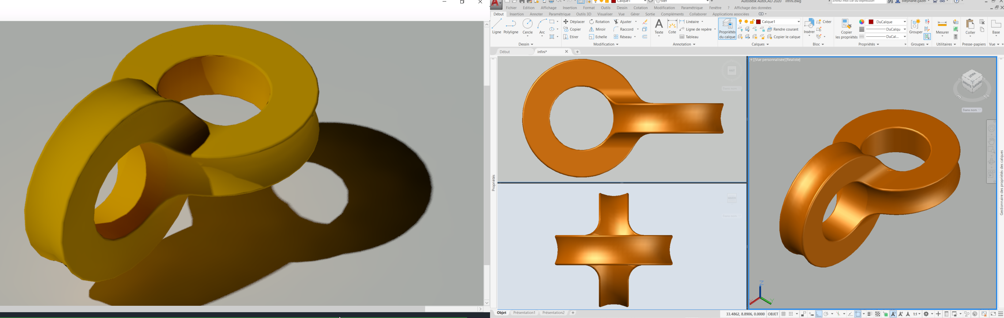 'The Infinite 8 is modeled with intersecting circular discs with toruses subtracted'.