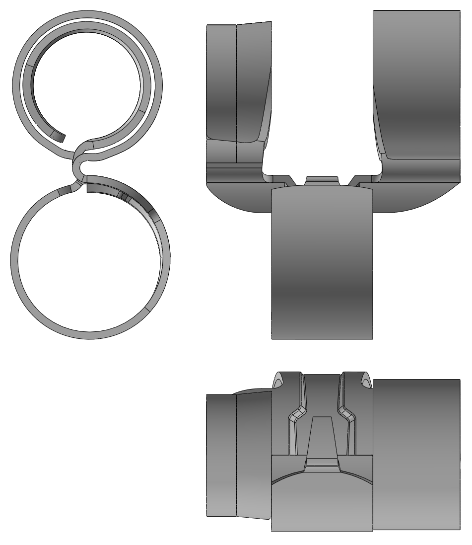 Due to time constraints I have not completed the piece, however, the missing part I think should be solved as revolutions or extrusions, plus some cuts, and then join it as a solid to the rest.