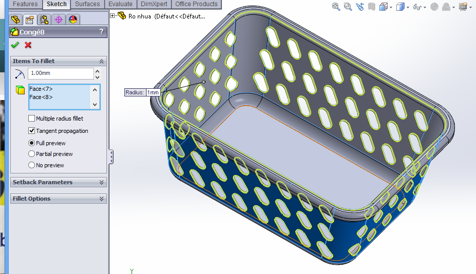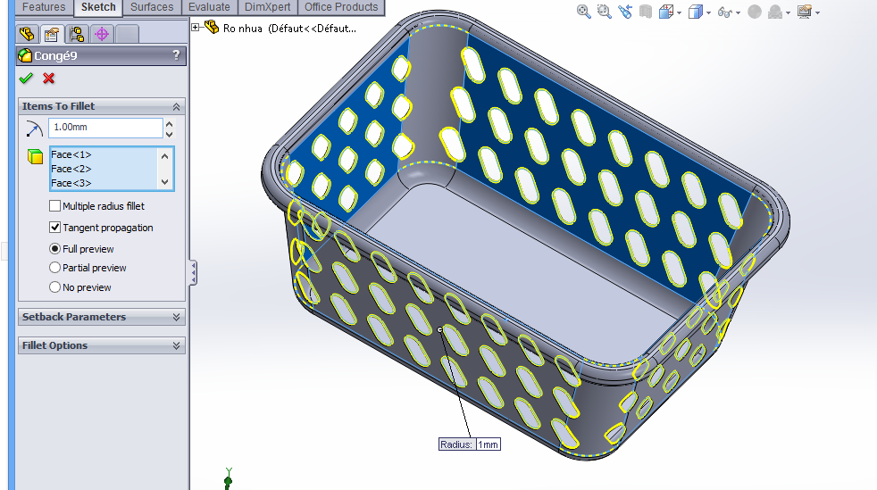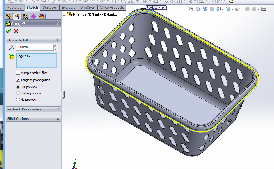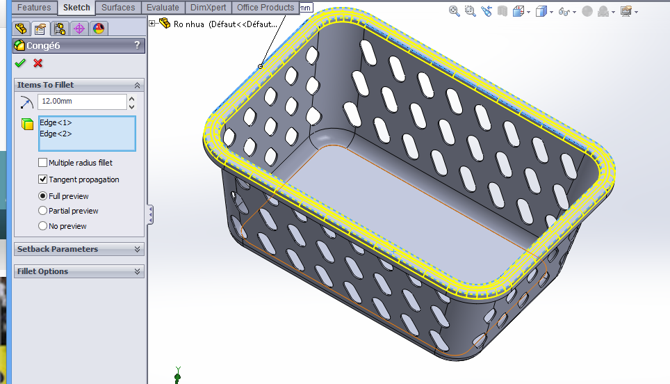 "Draw a plastic basket using SolidWorks