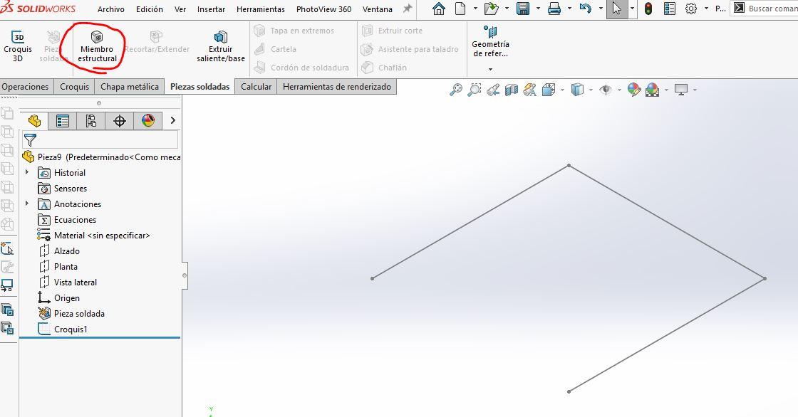 - En Pestaña piezas soldadas seleccionar miembro estructural.